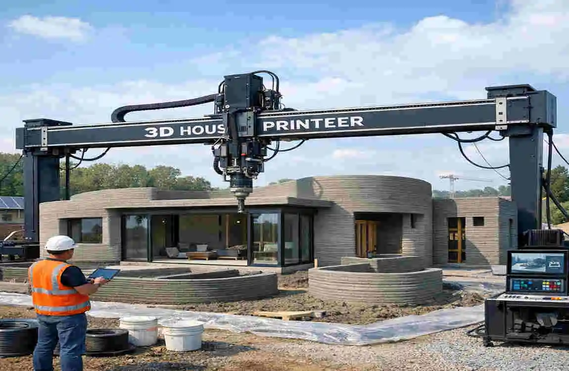 To understand the revolution, we first need to understand the machine. When you hear “3D printer,” you probably picture a small box sitting on a desktop, printing plastic Yoda figurines or spare drone parts. A house architectural printer operates on the same principle, but on a gargantuan scale.