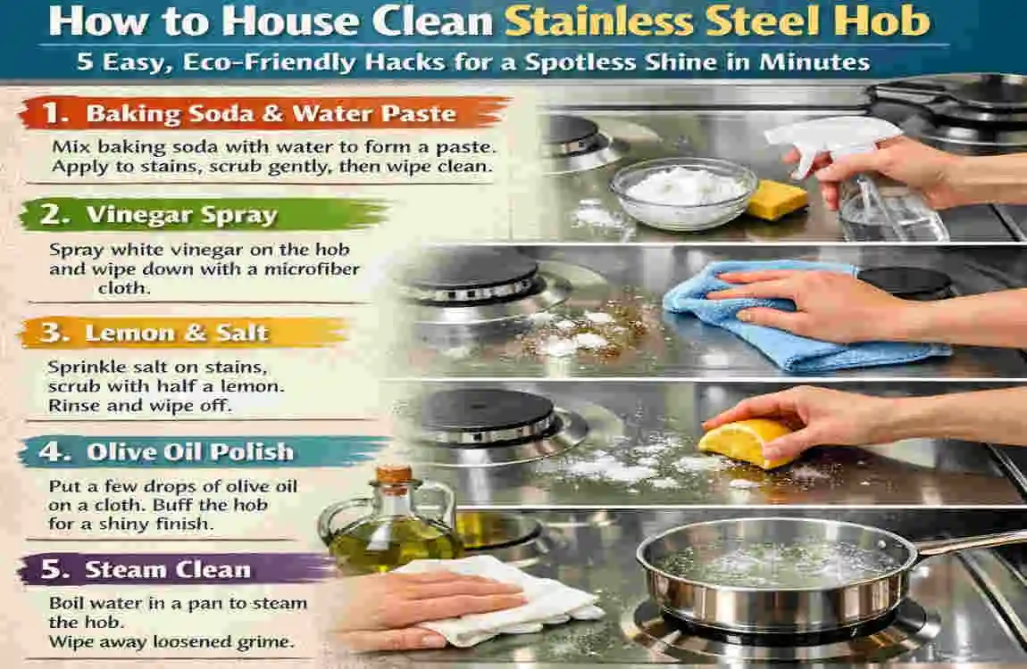 How often should I clean my stainless steel hob? You should do a quick wipe-down with vinegar and water after every heavy cooking session. A deep clean with baking soda and oil polishing is recommended once a week to maintain the shine.