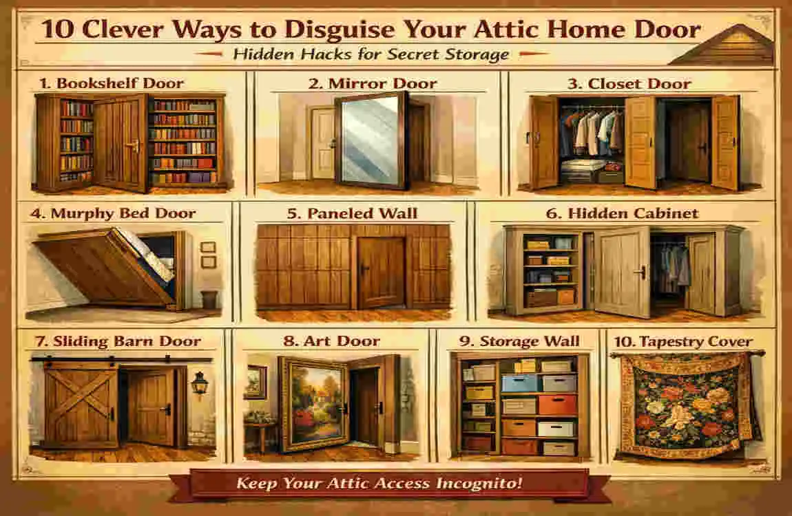 Here’s the exciting part! Below are 10 creative methods to hide your attic door, complete with step-by-step instructions, pros and cons, and cost estimates.