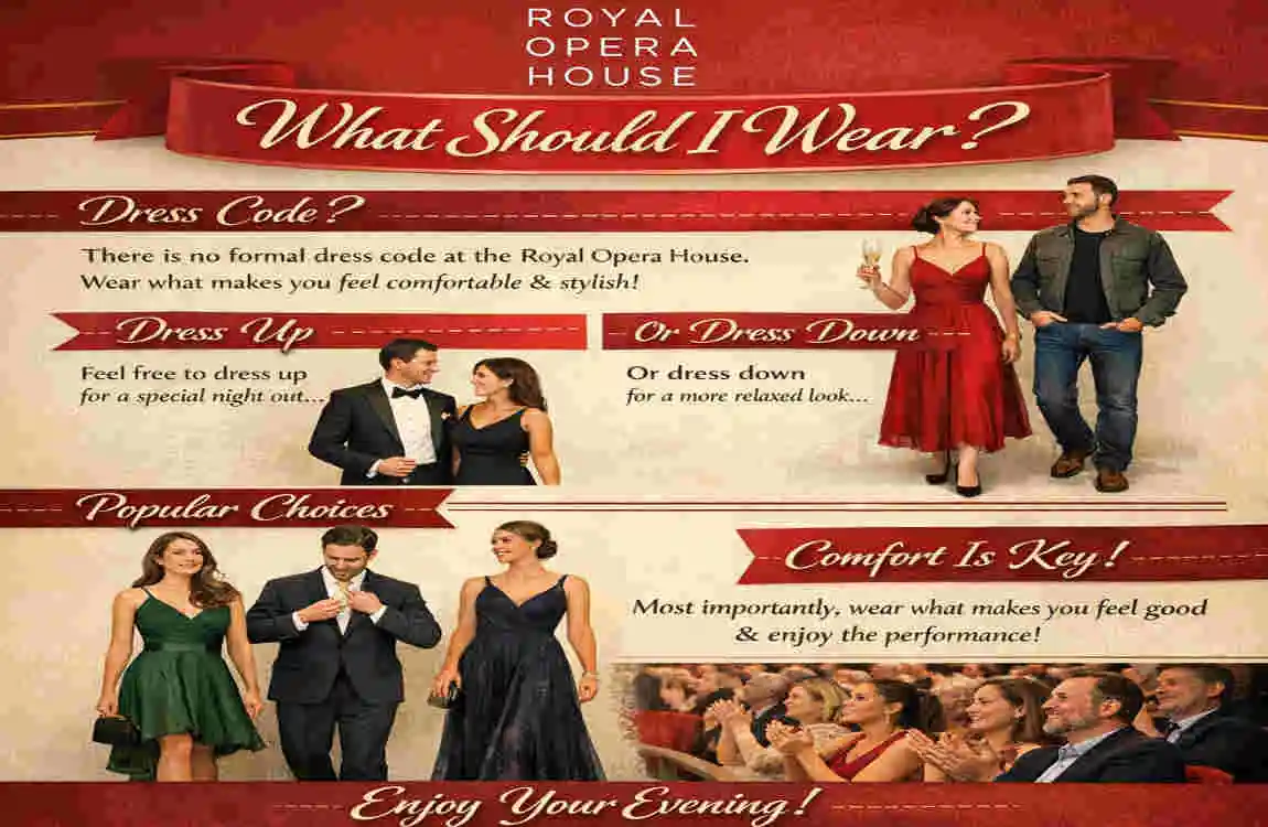 While there’s no obligation to dress up, many visitors embrace the chance to wear something special. After all, the Royal Opera House is as much about the ambiance as it is about the performance.